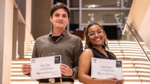 Los doctorandos Pablo Rojas y Carmen García fueron distinguidos con el primer y segundo lugar en la competencia de pósteres del simposio DOF 2025, destacando