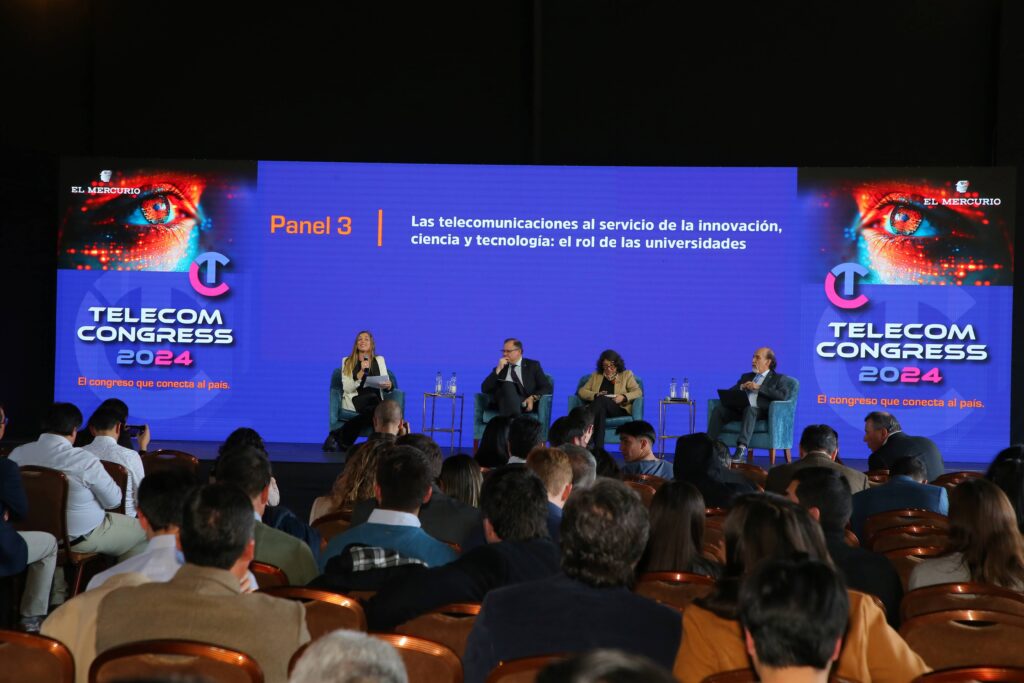 Elisa Araya (UMCE), Rodrigo Vidal (Usach) y Osvaldo Corrales (UV) expusieron en la charla “Las telecomunicaciones al servicio de la innovación, ciencia y tecnología: el rol de las universidades”. Por primera vez, el CUECH fue parte de un panel exclusivo en el Telecom Congress.